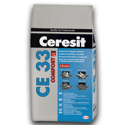 A CERESIT® CE 33 kül- és beltéri, rendkívül sima felületet képző, színtartó fugázó. Könnyen alkalmazható, víz- és fagyálló. Alkalmas régi és új lakóépületek, üveg és elszíneződésre nem hajlamos természetes kő, fal- és padllóburkoló lapok közötti fugák kitöltésére.