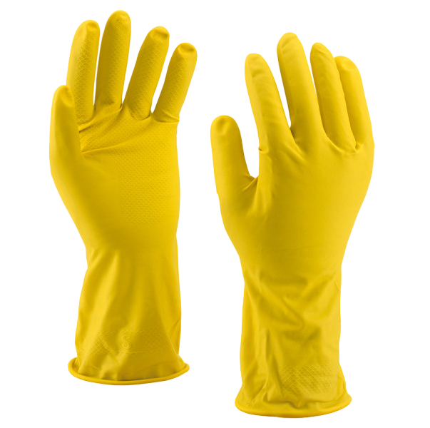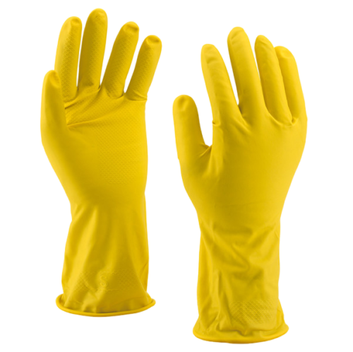 Velúrozott belsejű, hátzartási latex kesztyű, csúszásgátló kiképzésű tenyérrel és ujjakkal.